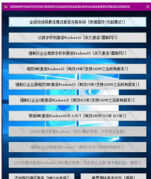 Win7:模拟BIOS激活(仅BIOS环境)→常规KMS激活→企业版强激活