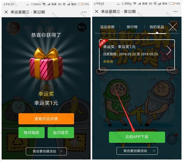 微信扫码进去玩游戏抽奖 基本必中1元 然后返回活动界面 在右下角“礼物”的图标点进去