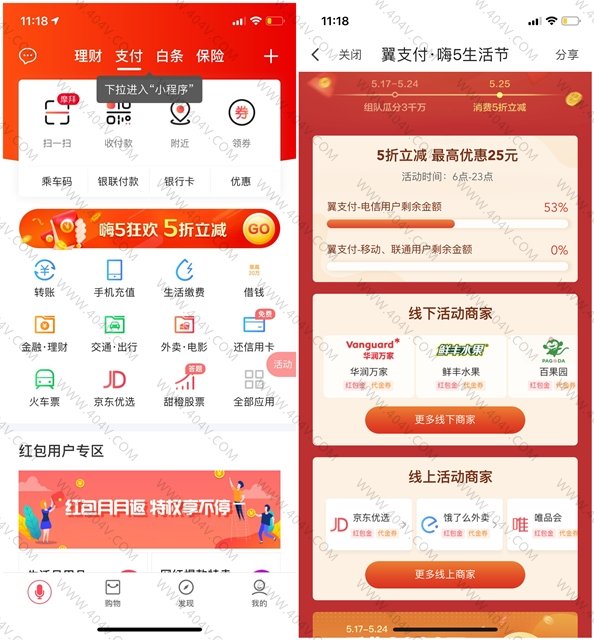 在活动界面还有剩余金额的时候 说明还有优惠 没有就是没有了 在线下 线上商家消费使用翼支付即可立减