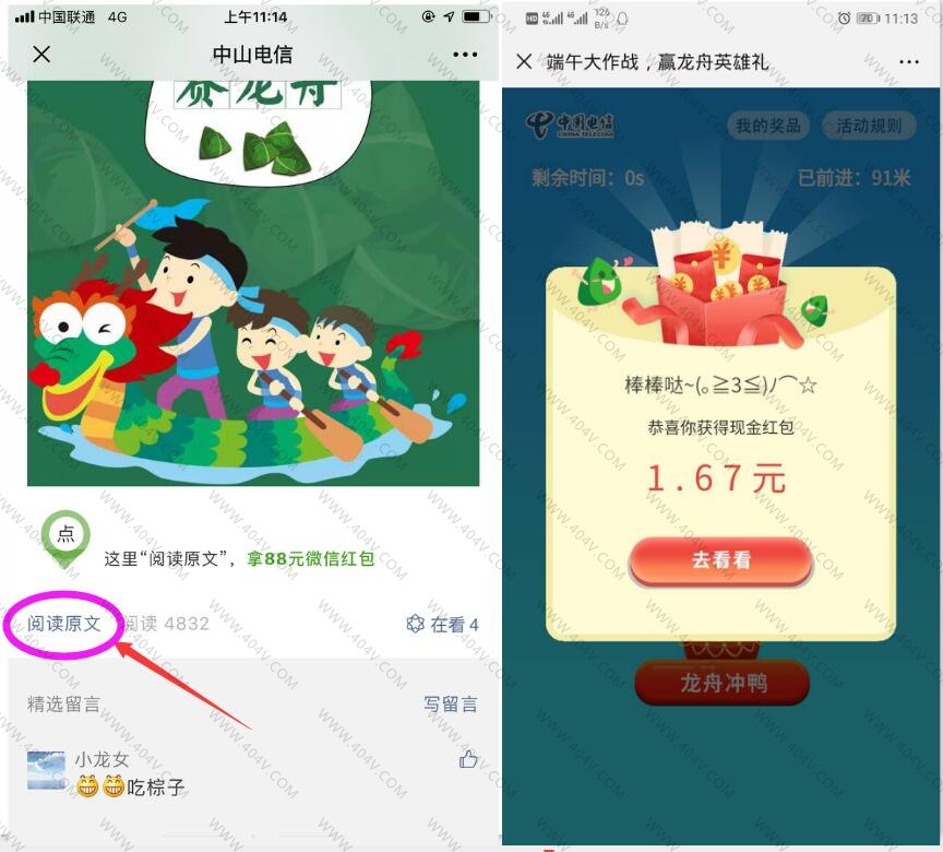 1.微信扫码->左上角先关注公众号->返回阅读全文->赛龙舟