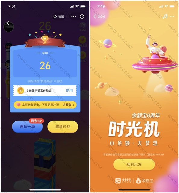 支付宝打开搜索“时光机”进入活动 玩游戏 成绩越好即可得到越多的体验金奖品等
