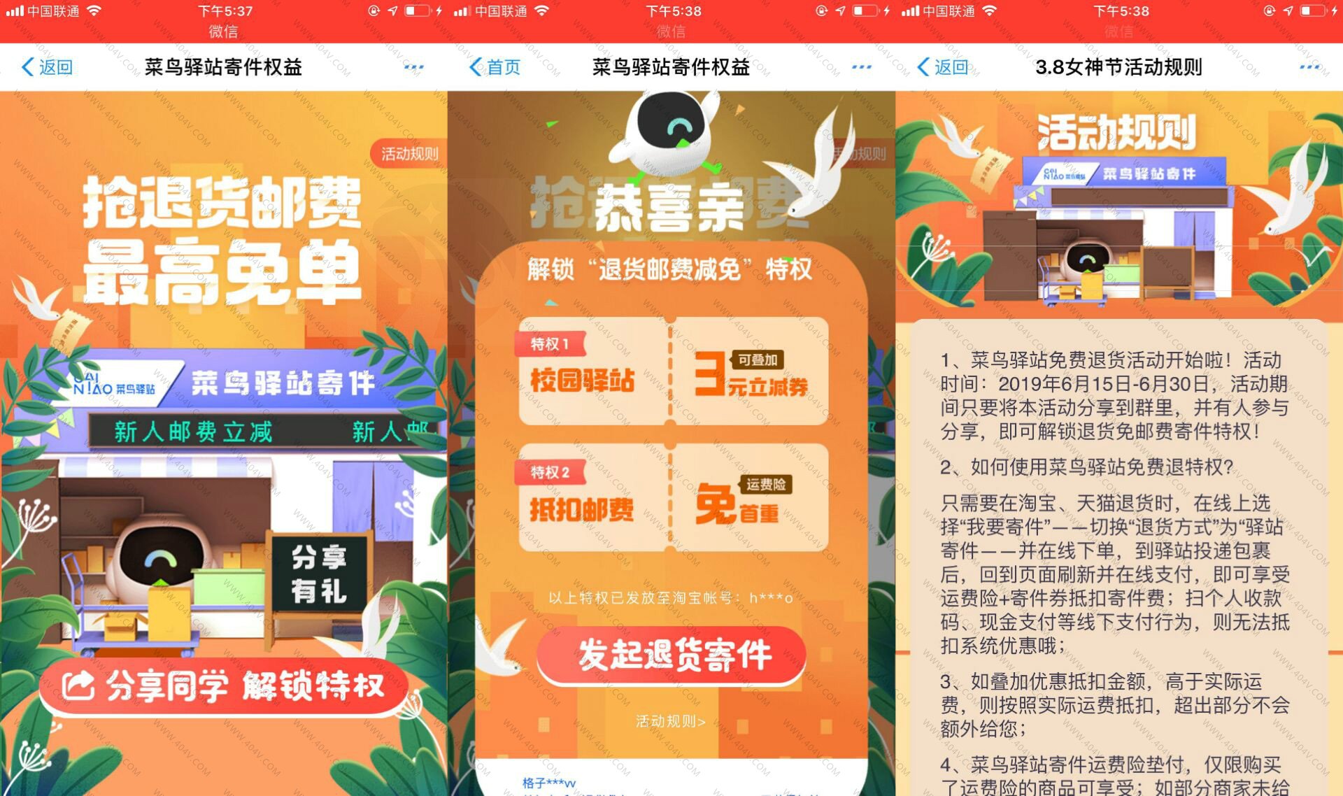 最近需要退货上,菜鸟驿站免费邮费,那些没运费险的用的上~