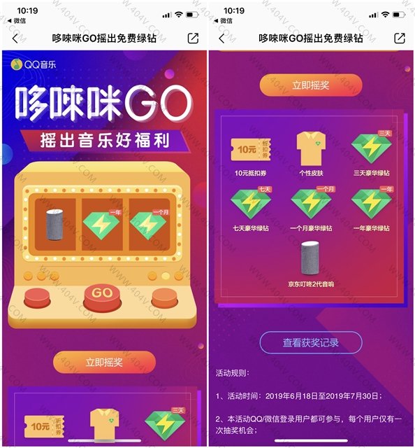 手机扫码进入活动界面 在活动界面立即摇奖抽奖3~1年豪华绿钻 概率中奖