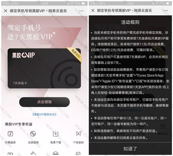网易云绑定手机号免费领取七天黑胶vip 仅限未绑定手机用户