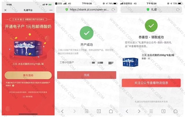 公众号“礼道平台”-活动专区-绑卡秒开电子户1元领酸奶-按照提示操作即可!京东活动!