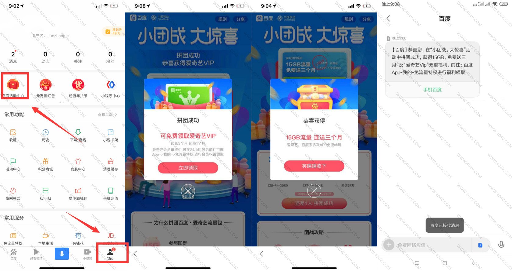 1.百度APP-我的-活动中心-找到“15G流量”进去开团-邀2人进团