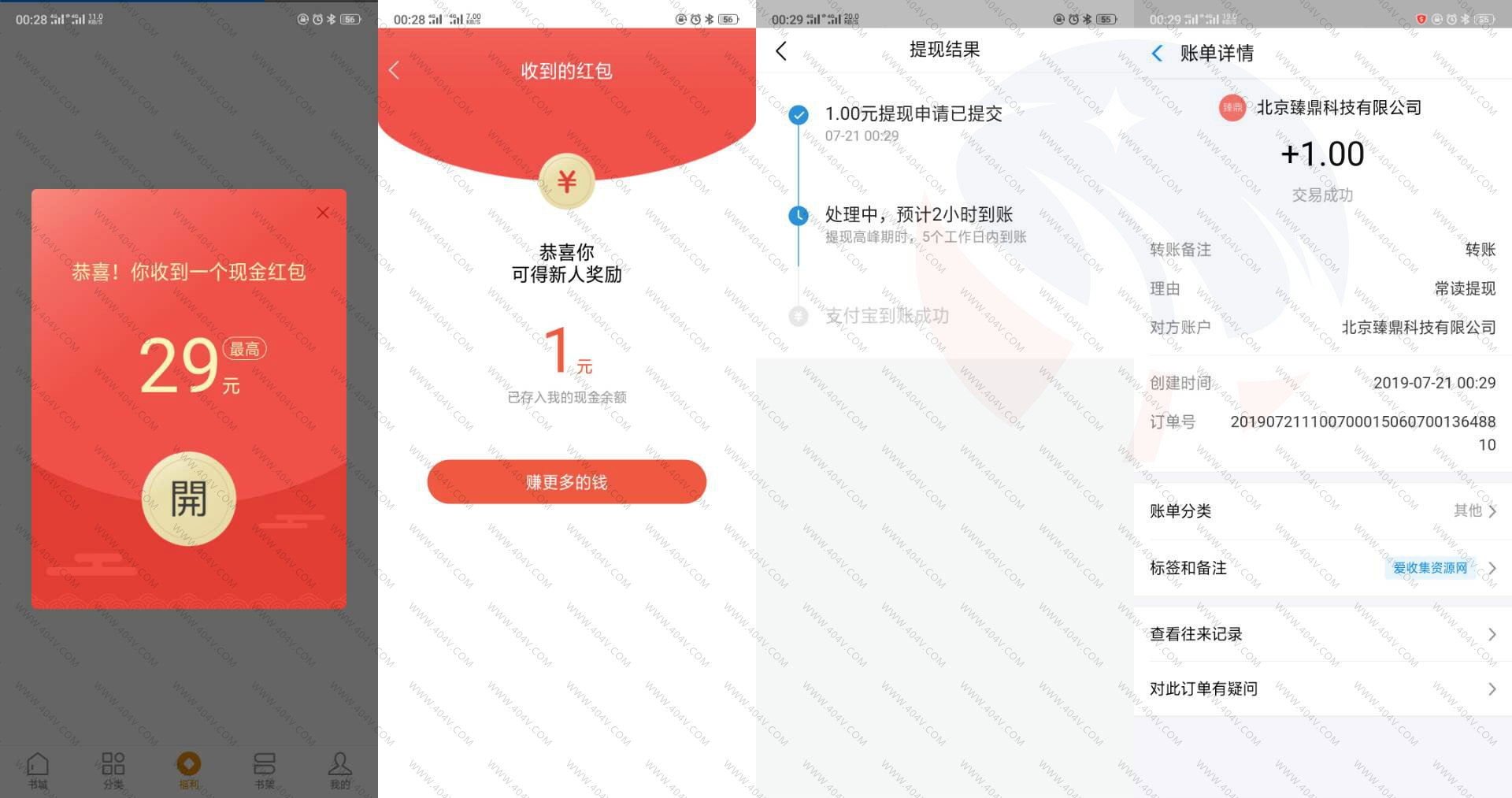 点福利->手机验证码登录领1元->接着去提现到支付宝秒到!