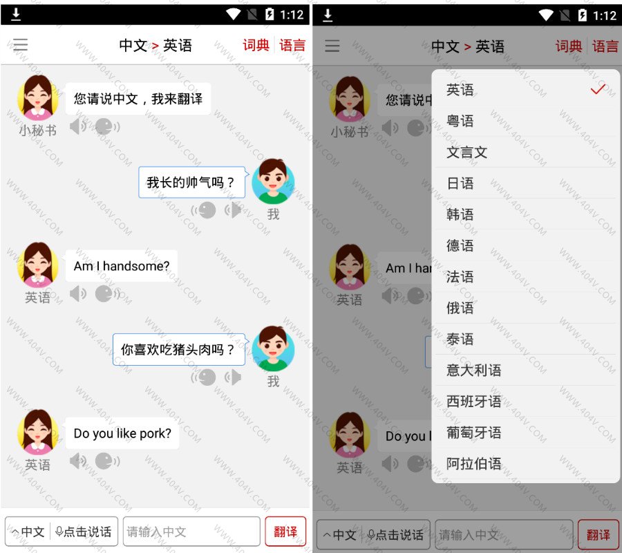 软件超强大,支持输入或语音录音同步翻译18国语言