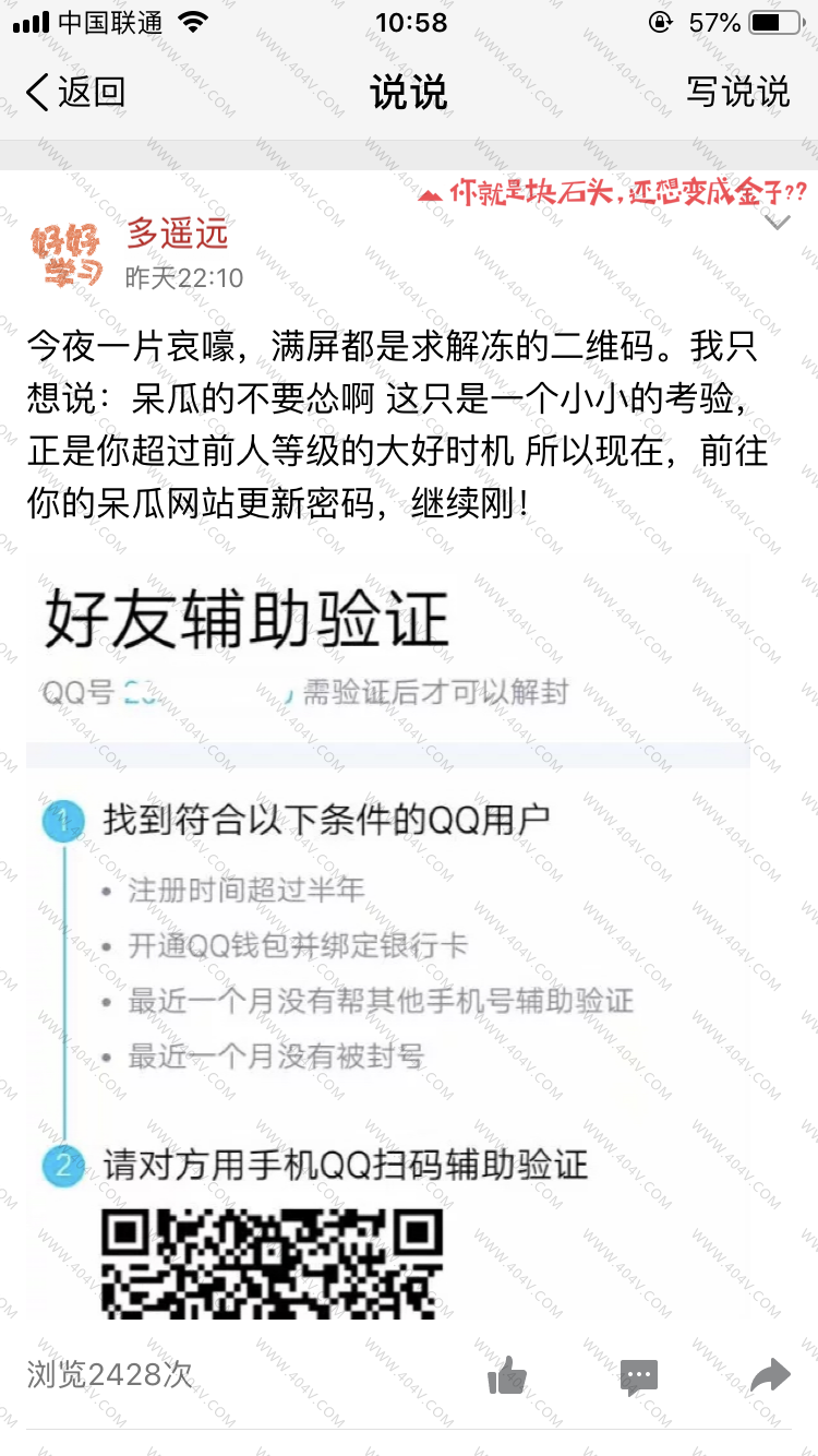 一时间凡是和QQ有关的群皆是哀声哉道,苦不堪言。满屏尽是求辅助解冻的二维码