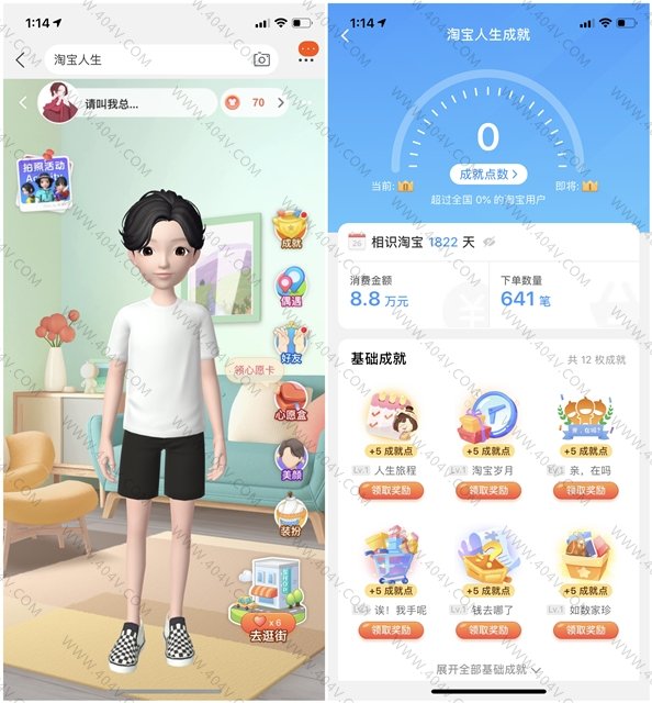 打开手机淘宝APP搜索“淘宝人生”然后进入 在右边的图标“成就”点击进去