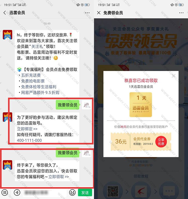 微信关注公众号“迅雷会员”