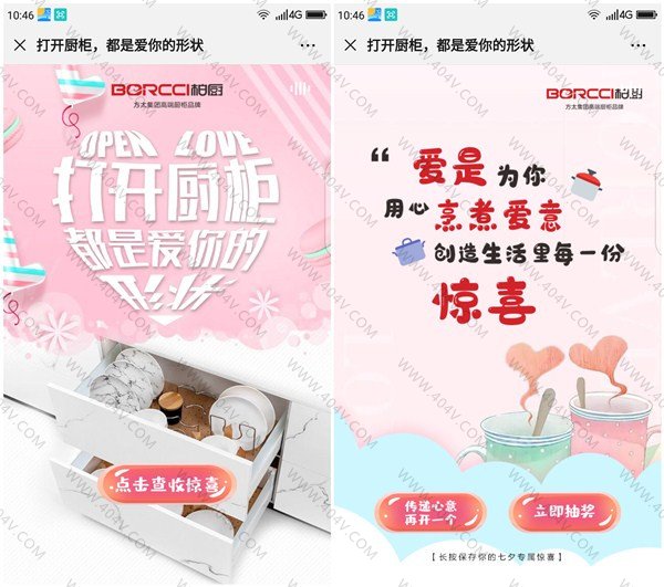 微信公众号搜索BORCCI柏厨进入 回复“七夕红包”或点击右下方“七夕红包”都可进入活动页面