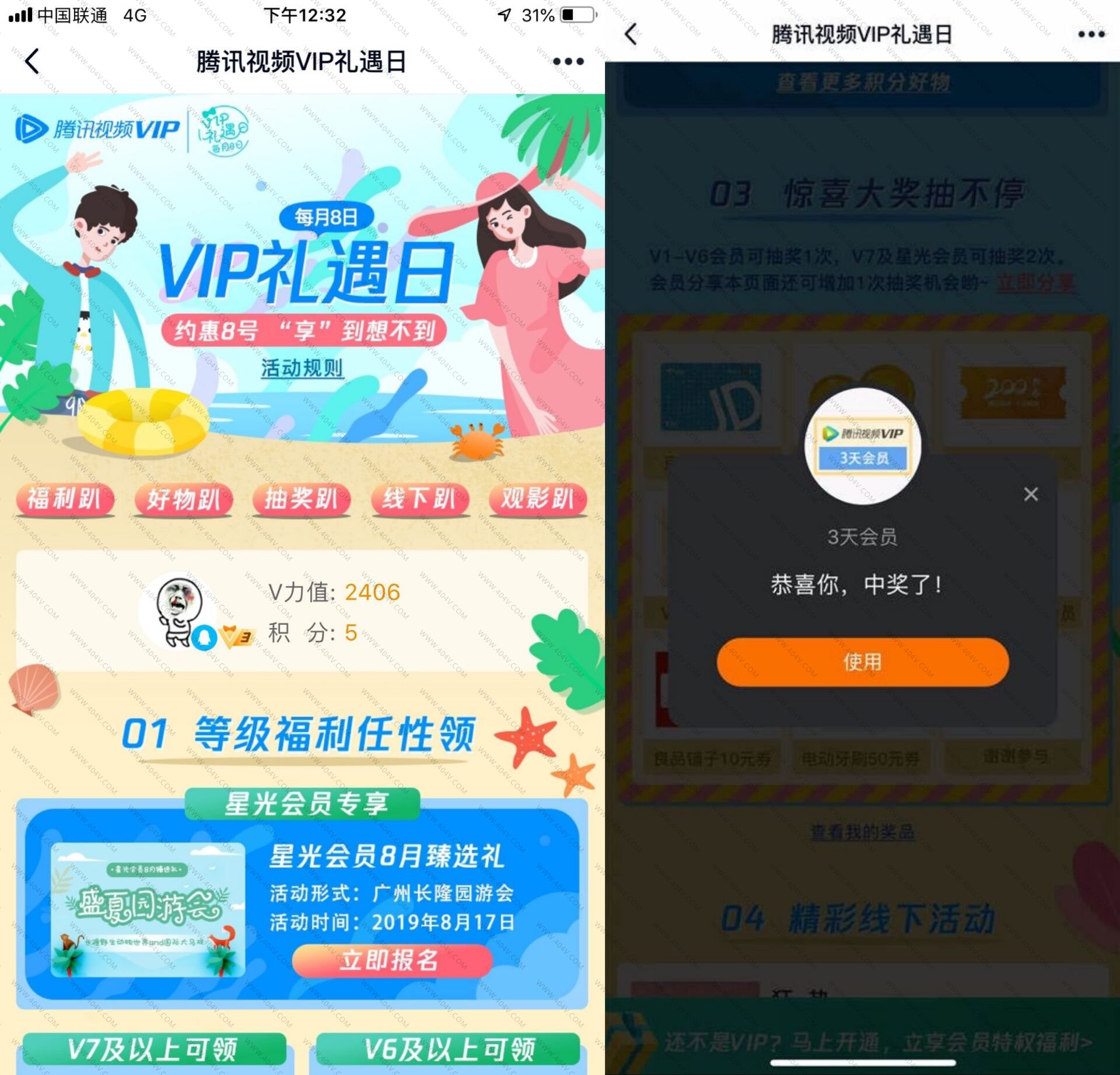 每个等级都能领相对应礼包,下拉可免费抽奖亲测3天会员