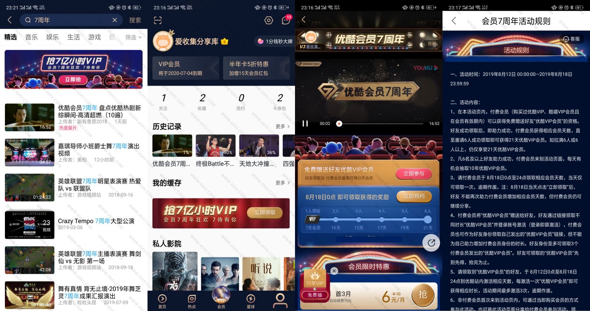 1.优酷APP首页搜索“7周年”进入活动->立即预约参加->分享链接给别人领取