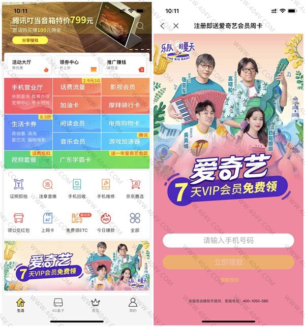 即可领取7天爱奇艺会员 卡券非秒到 需手动激活