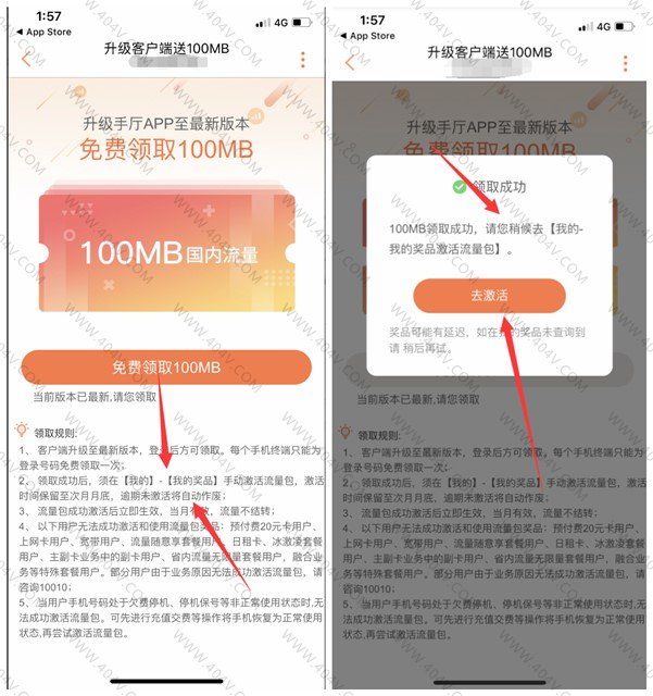 升级以后 打开客户端 一样的位置 点进去 就会变成领取 领取以后 记得 去激活 流量是秒到账的