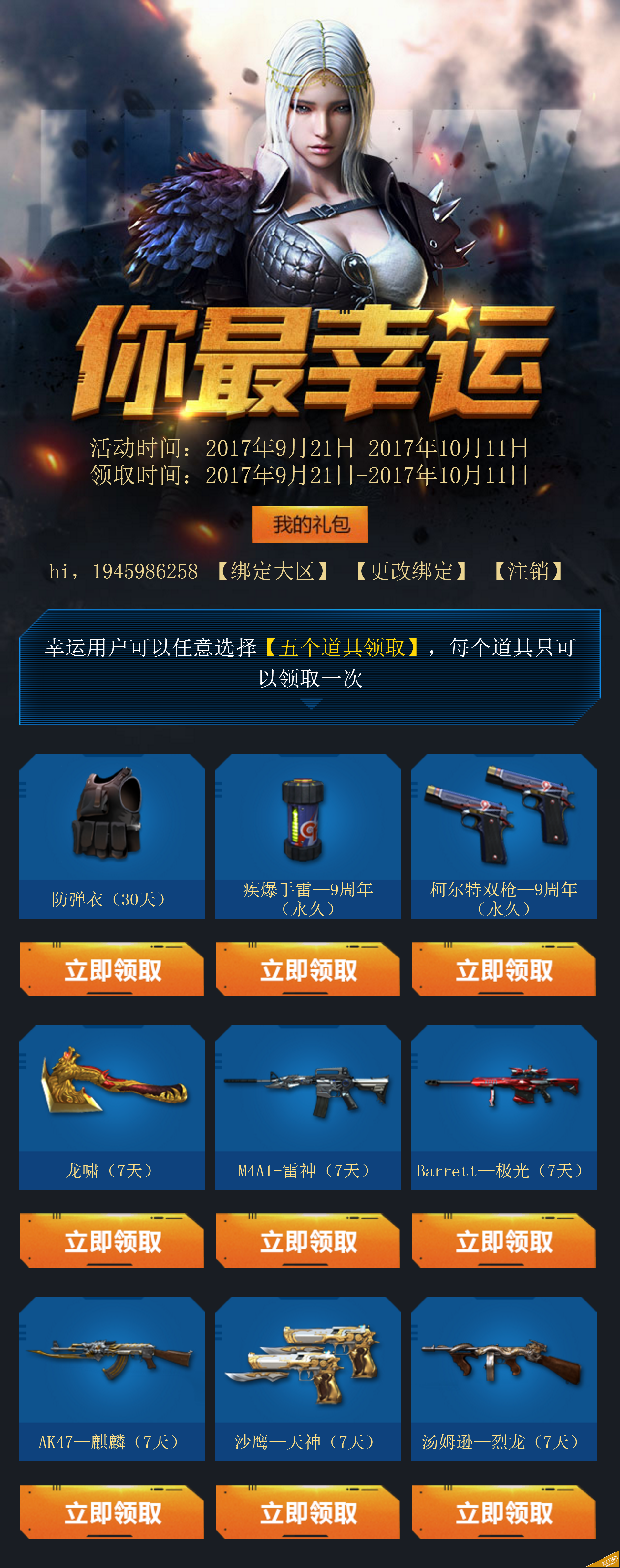CF9月份你最幸运 幸运玩家领取永久或期限道具 限领一次