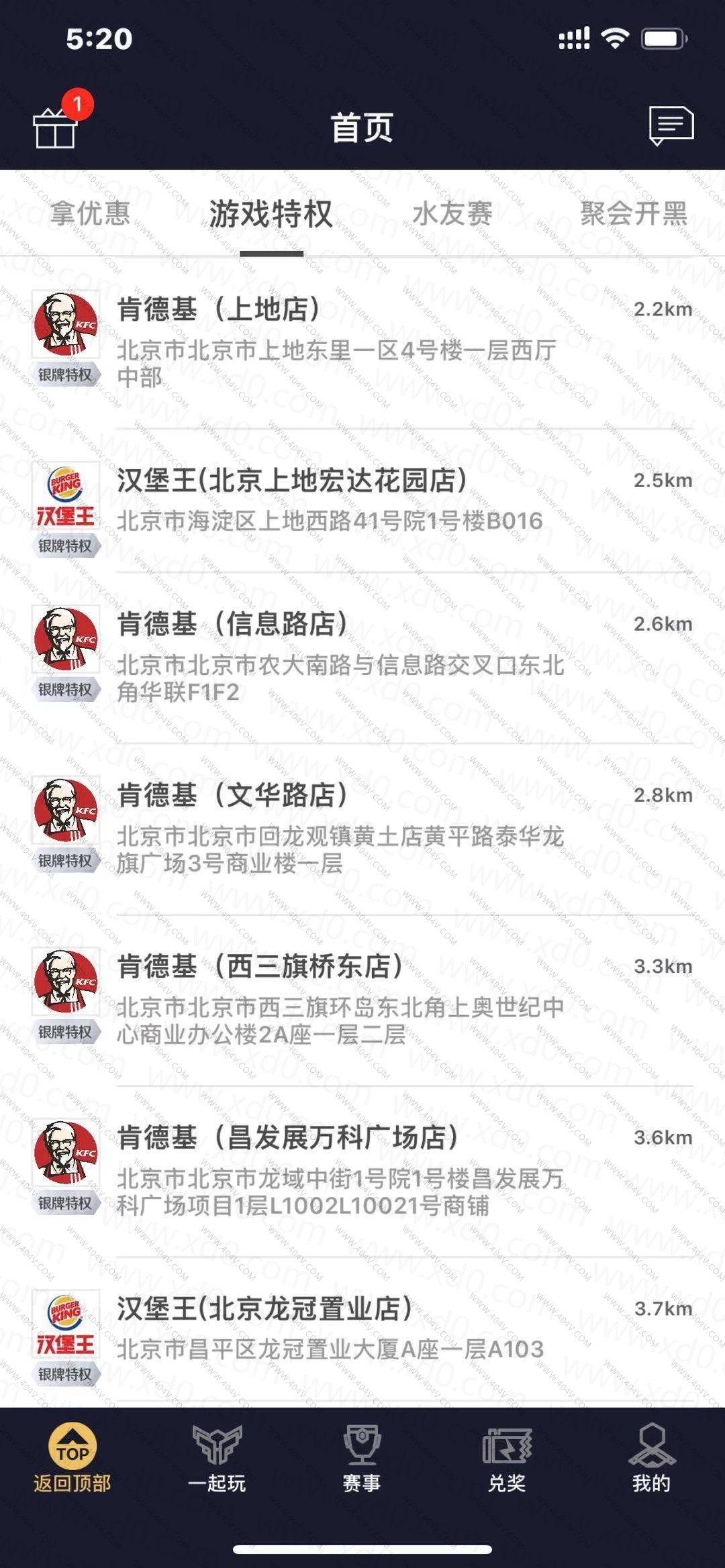 1.打开王者人生APP,查看一下有哪些店是特权合作商户