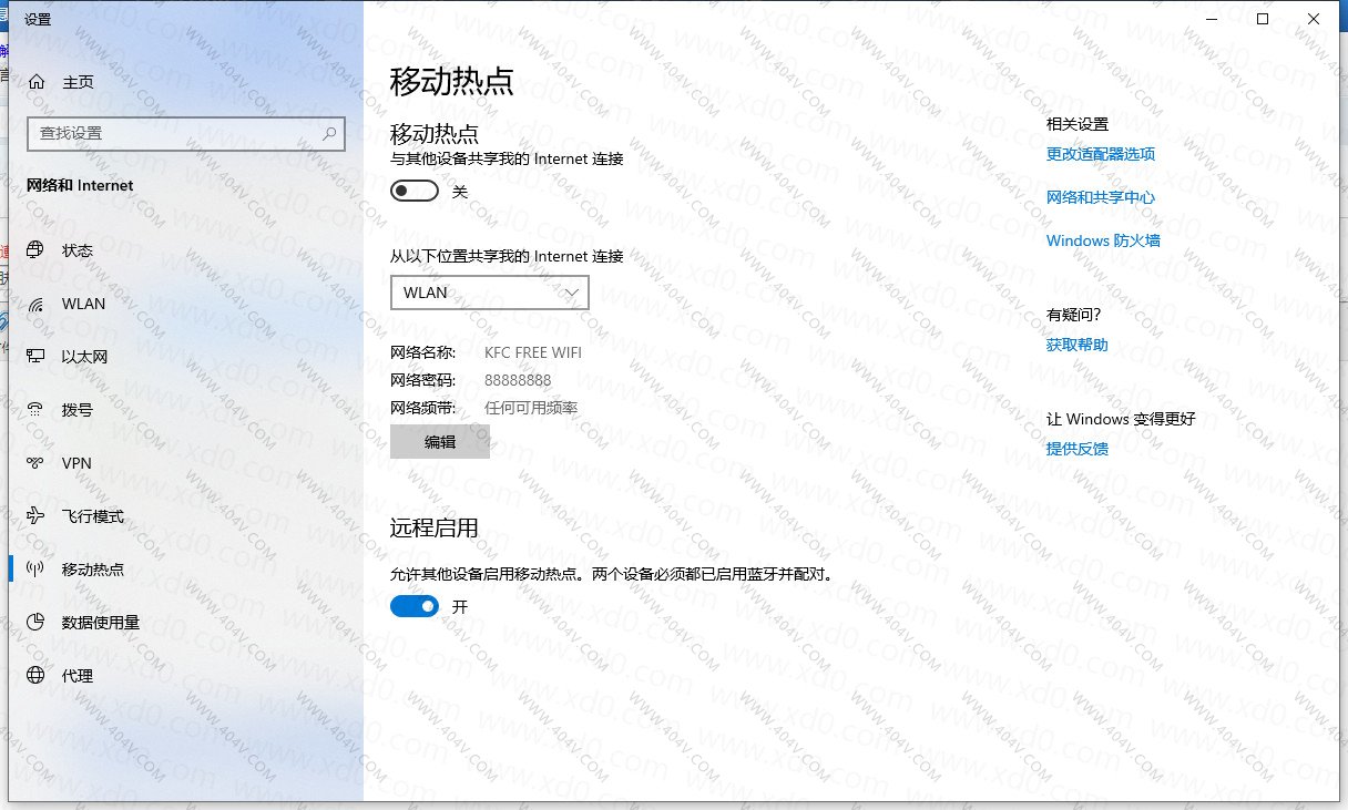 打开你的网络设置->找到移动热点->网络名称设置为KFC FREE WIFI,密码自己随便设置