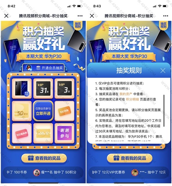 每次抽奖消耗10积分 需要腾讯视频VIP用户才可以参与 基本10次之类会中3~31天!