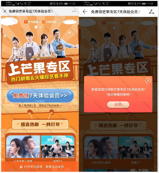 微信打开按步骤领取->亲测7天芒果会员秒到!