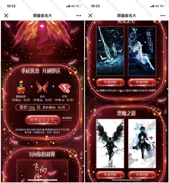 在活动界面卡开通超级会员可以领取一款限量版名片装扮 还送一个月红钻