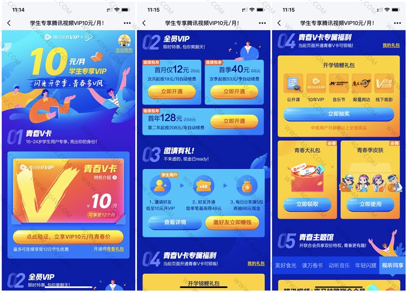 开通青春V卡还可以抽10年腾讯视频VIP、限量周边、下线观影等 有兴趣的可以参与一下