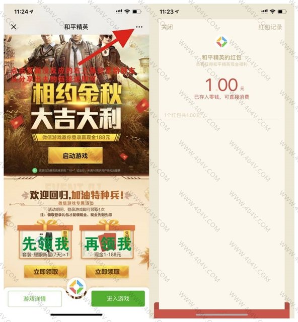 登录和平精英手游即可领取先领取左边的礼包 在领取右边的现金红包