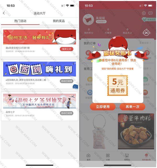 下载注册并登录融E购在活动大厅或者登录进入时会弹出抽奖窗口