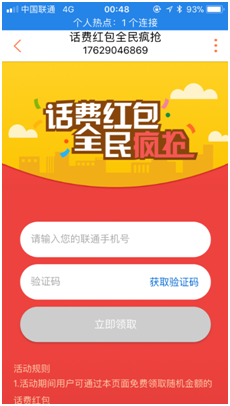 第一步:打开联通营业厅-首页-中间轮播图 话费红包人人有份,
