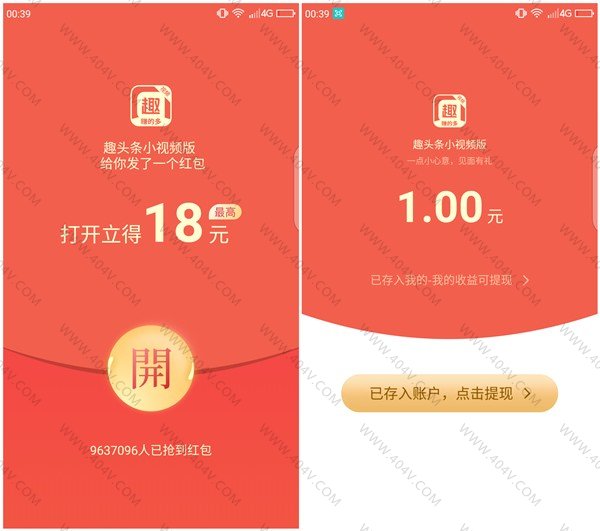 下载后打开APP直接拆红包会得1元现金,立即去提现,不过每天只能提0.3元,分3天提完!