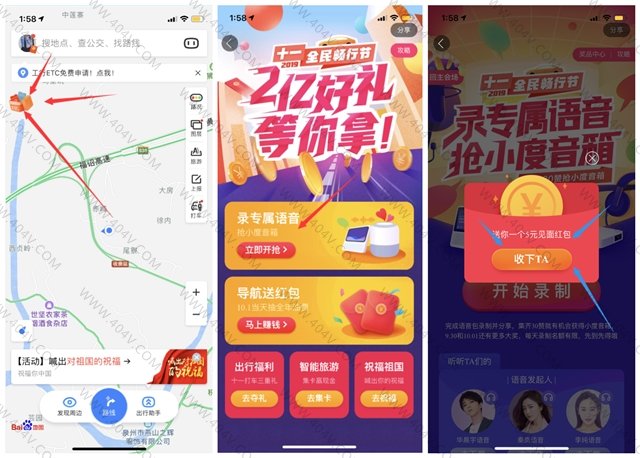 手机各大应用商店下载百度地图APP 在左上角可以看到一个“2亿”的图标点击进入