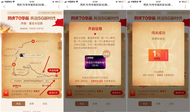 扫码跳转到手机营业厅登录联通手机账号 然后点击开启征程 在点击第二个礼包点开启答题闯关
