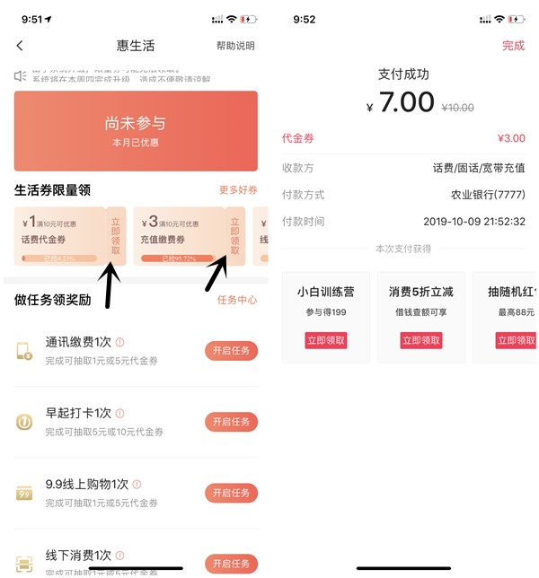 还可以领取一张线下商户消费满10元减5元的优惠券,需要的上吧!