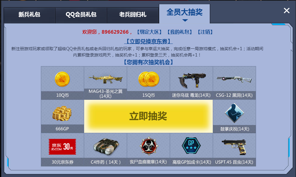新用户注册可抽年费的腾讯超级会员, 领取了礼包的玩家