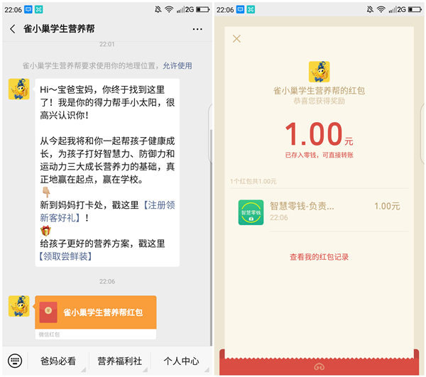 再次点击分享链接进入注册一下,大号就可以获得1块钱了!