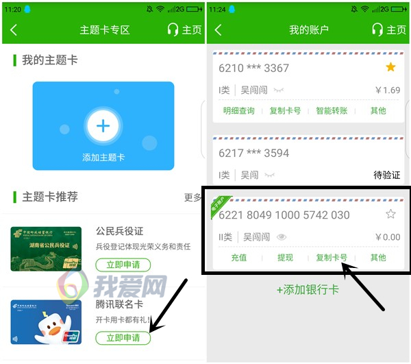 【我的】--【银行卡】查看刚开通的腾讯联名卡 复制二类卡号