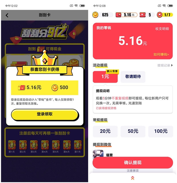 需要不重复的视频 找两个视频挂着满五分钟 就可以点上面的钱 绑定手机号提现