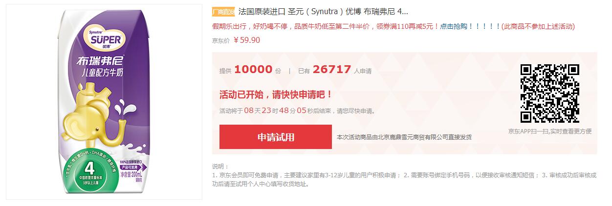 京东免费的儿童牛奶1W份,需申请,应该是抽奖!地址:http://t.cn/ROM174z